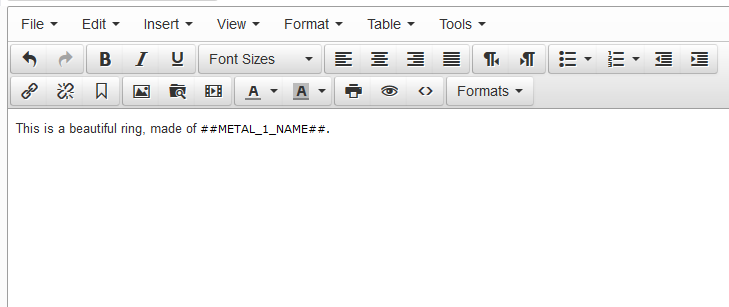 Template: | This is a beautiful ring, made of ##METAL_1_NAME##. |