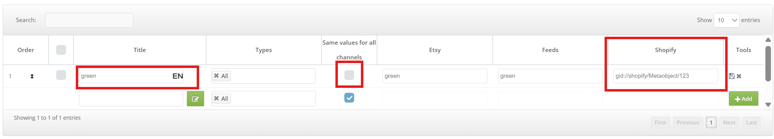 For each value, enter the correct Shopify reference value, f.i.